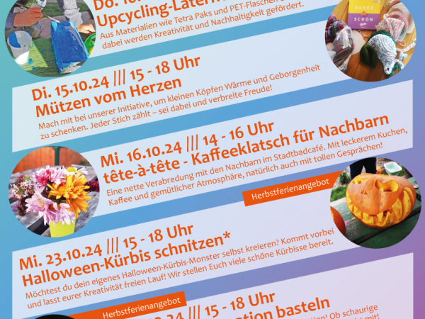WeiterlesenDo. 10.10.24 von 15 bis 18 UhrUpcycling-Laterne basteln im „Grünen Eck“Aus Materialien wie Tetra Paks