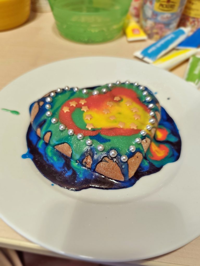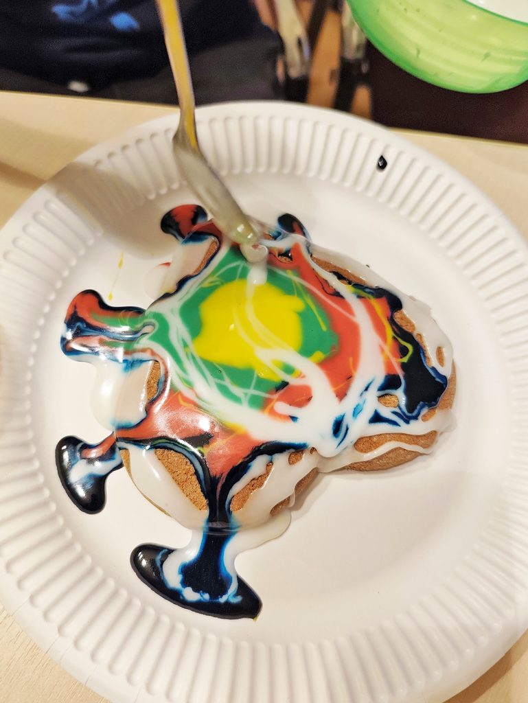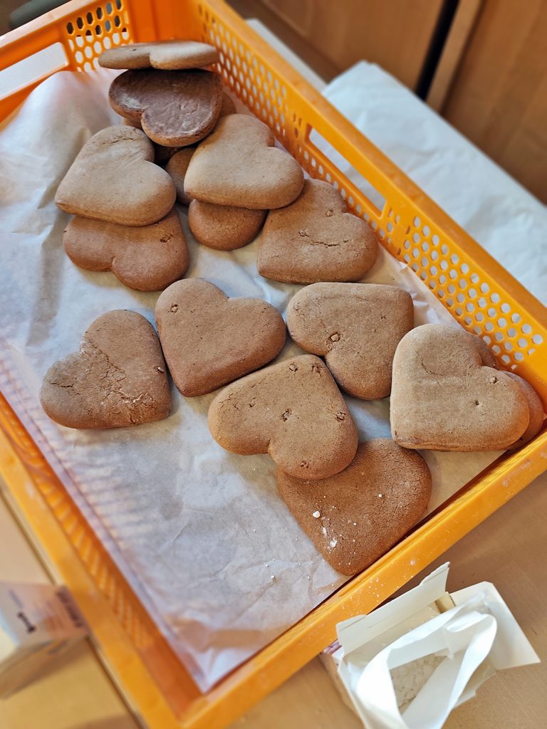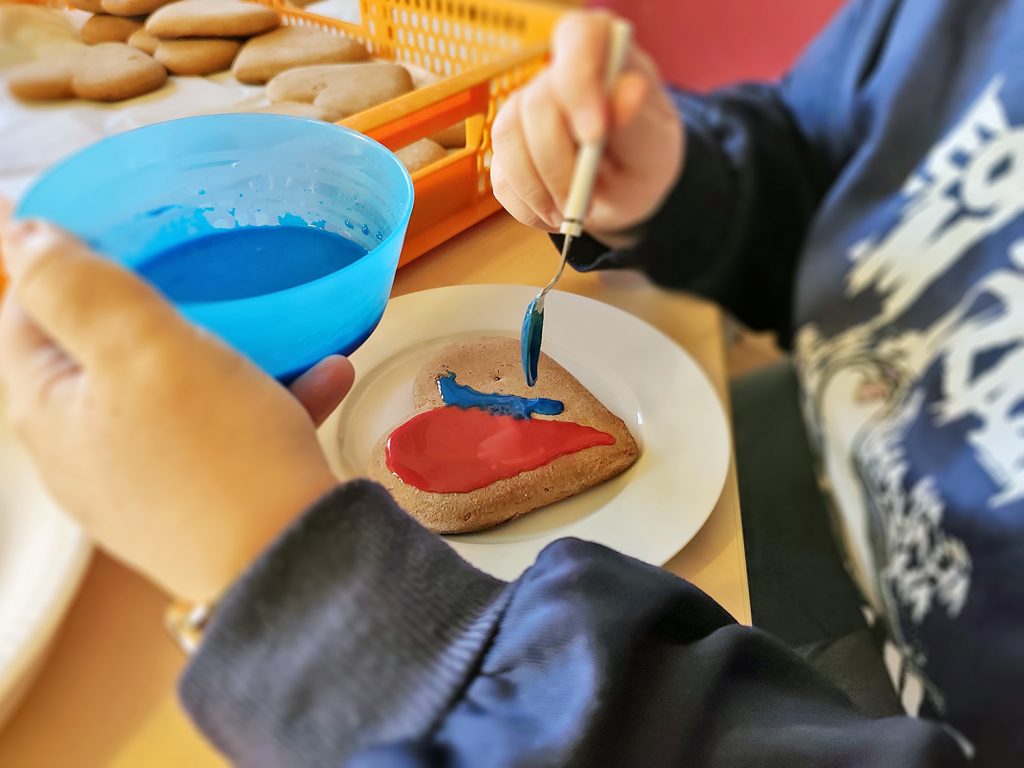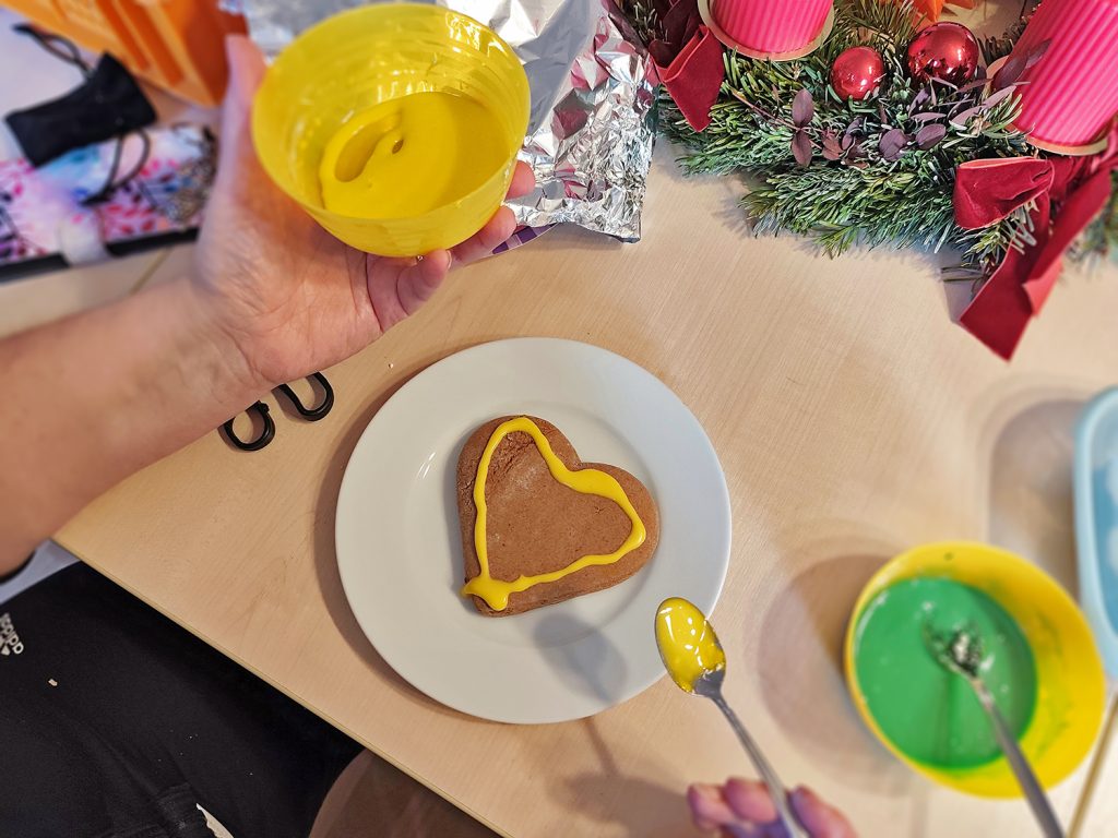 Es hat geduftet und geglitzert – und es wurde viel gekleckert beim Lebkuchenverzieren gestern im Nachbarschaftstreff im KBR! Ob Farbverlauf, Marmoreffekt oder abstrakt: Jedes Stück Lebkuchen wurde in ein einzigartiges Kunstwerk verwandelt.